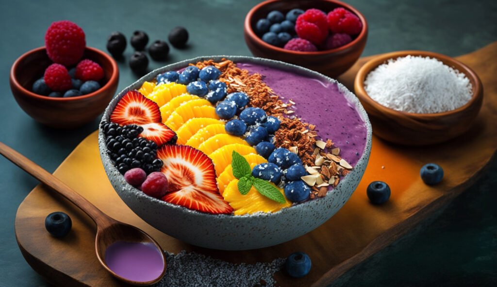 Freshness in a bowl Blueberry yogurt granola dessert ,generative artificial intelligence